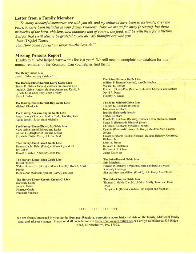 Gable Reunion News, Vol 3, June 2005