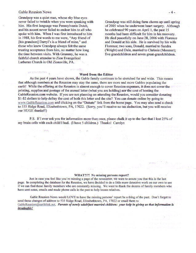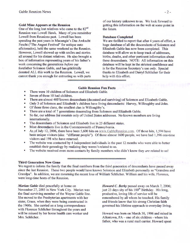 Gable Reunion News, Vol 4, July 2006